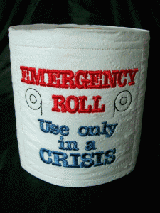 At a recent Melanie Coakley “Start Your Own Embroidery Business” event, she talked about embroidering on a roll of toilet paper and wrapping the roll up to give as a gift at a party. A salesperson who attended the party thought T.P. embroidered with her name and phone number would make a wonderful calling card. Melanie got an order for 100 rolls at $20 each – I’m sure you can do the math…